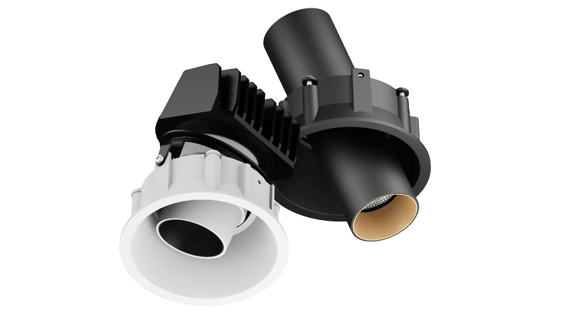 The Shift Out G2 Downlight offers both accent and general lighting with 350° rotation and 30° tilt. The updated model provides better heat efficiency with a new dust sock while achieving up to 60lm/W. Available with honeycomb or linear lens options for glare reduction or an elliptical beam effect.